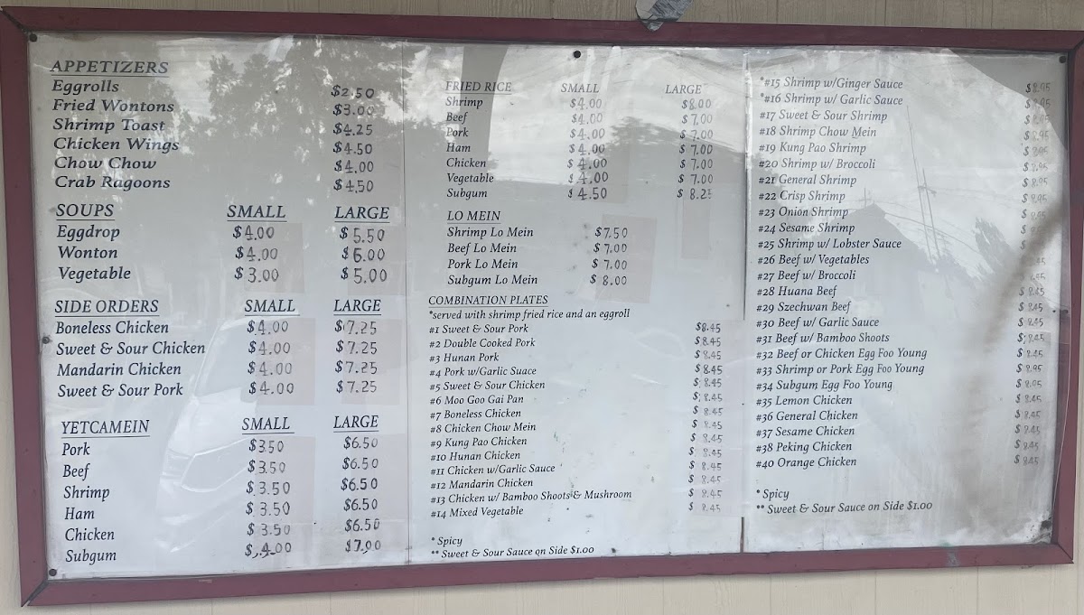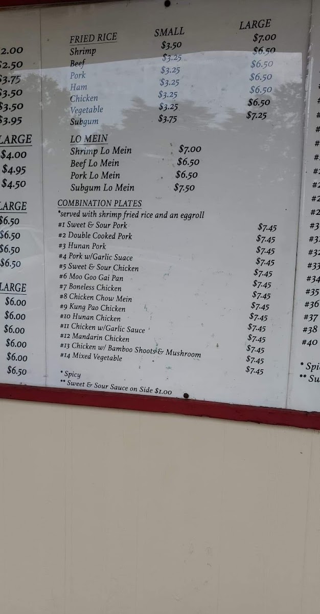 Explore the diverse menu featuring classic Fried Rice options including shrimp, beef, pork, ham, chicken, and vegetable, alongside a variety of Lo Mein dishes—from shrimp to subgum. Warm your soul with their delightful Soups, such as savory eggdrop and hearty wonton.